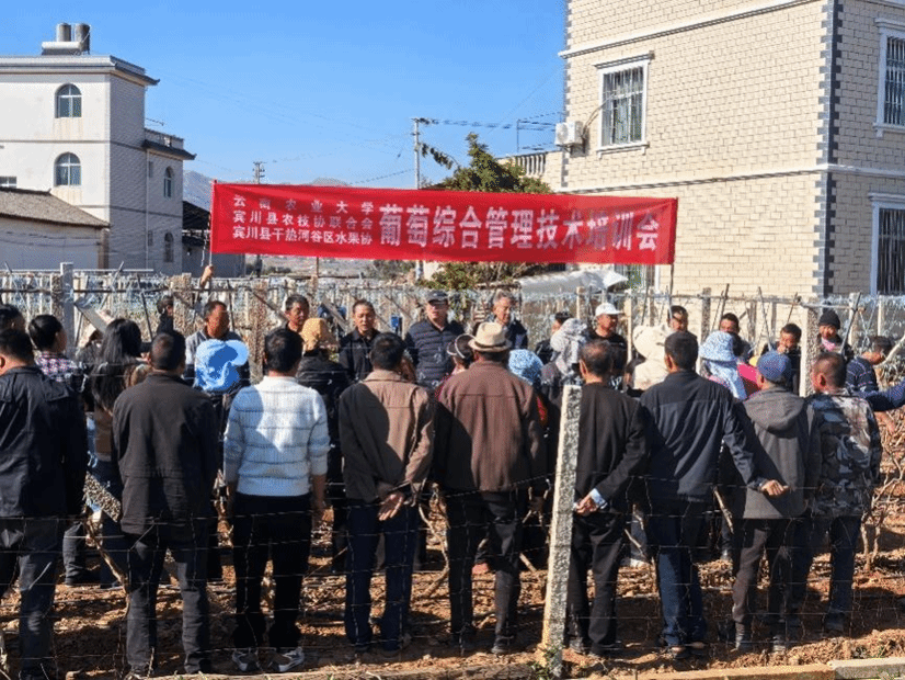 2025年12月20日至23日,云南农业大学植物保护学院杜飞教授联合中国农业科学院王忠跃研究员,依托“云南省王忠跃专家工作站”项目实施,赴云南宾川与当地农技协联合会共同开展葡萄综合管理技术专题培训,助力当地葡萄产业高质量发展。此次培训覆盖州城、平川、鸡足山、力角四个乡镇,培训人员近300人,为当地产业提质增效注入了科技动能。