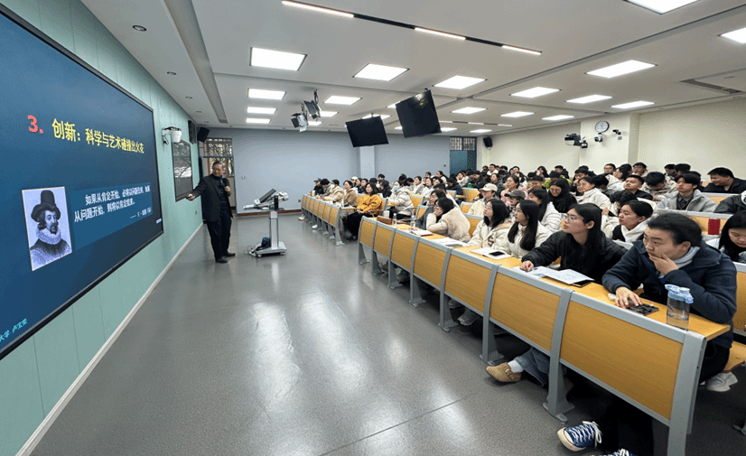报告中,卢教授深入剖析了科学思维与艺术思维的辩证关系,指出二者在追求“简单、对称、和谐”之美上高度相通。他以达·芬奇、爱因斯坦、钱学森等跨界典范为例,生动阐释了人文艺术素养对激发科学想象力与创新潜能的独特价值。卢教授强调,创新能力难以通过直接传授获得,而需在“学、思、践、悟”的过程中主动体悟,勉励师生勇于打破思维定式,敢于提出真问题,践行“大胆假设、小心求证”的研究路径。同时,他还分享了复旦大学“2+X+Y”人才培养模式等改革实践,为拔尖创新人才培养提供了有益借鉴。